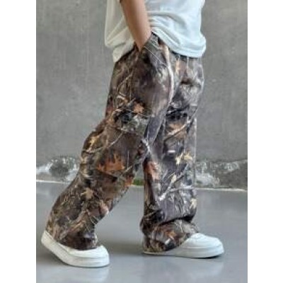 Flirla Women's Casual Loose Straight Leg Maxi Pants With Side Slit, Corduroy Fabric, Autumn/Winter