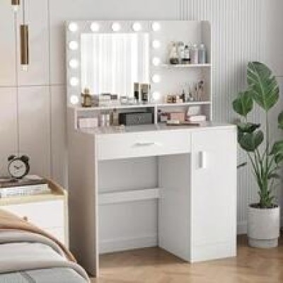 Vanity Desk With Mirror &Amp; Lights, White Makeup Desk With Drawers &Amp; Cabinet, 3 Lighting Modes &Amp;